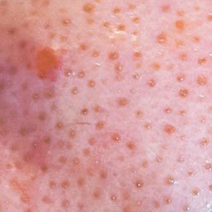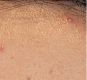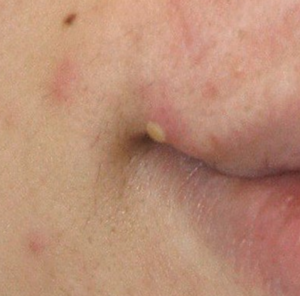 毛穴に皮脂や角質が詰まりぷくっと白く盛り上がった、比較的初期のニキビ。