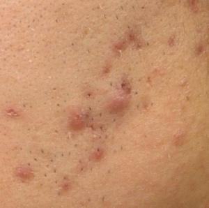 過剰な皮脂分泌などででき、炎症反応を強く起こし赤みを帯びてしまったニキビ。
