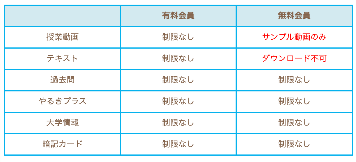 この2つの会員の違いは、授業動画の視聴可否、