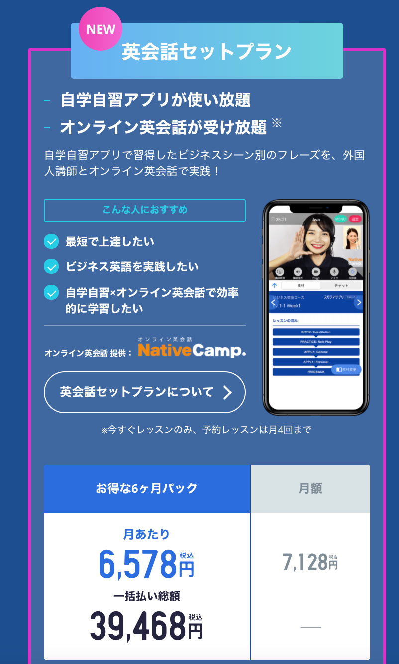 ビジネス英語コース 英会話セットプランについている