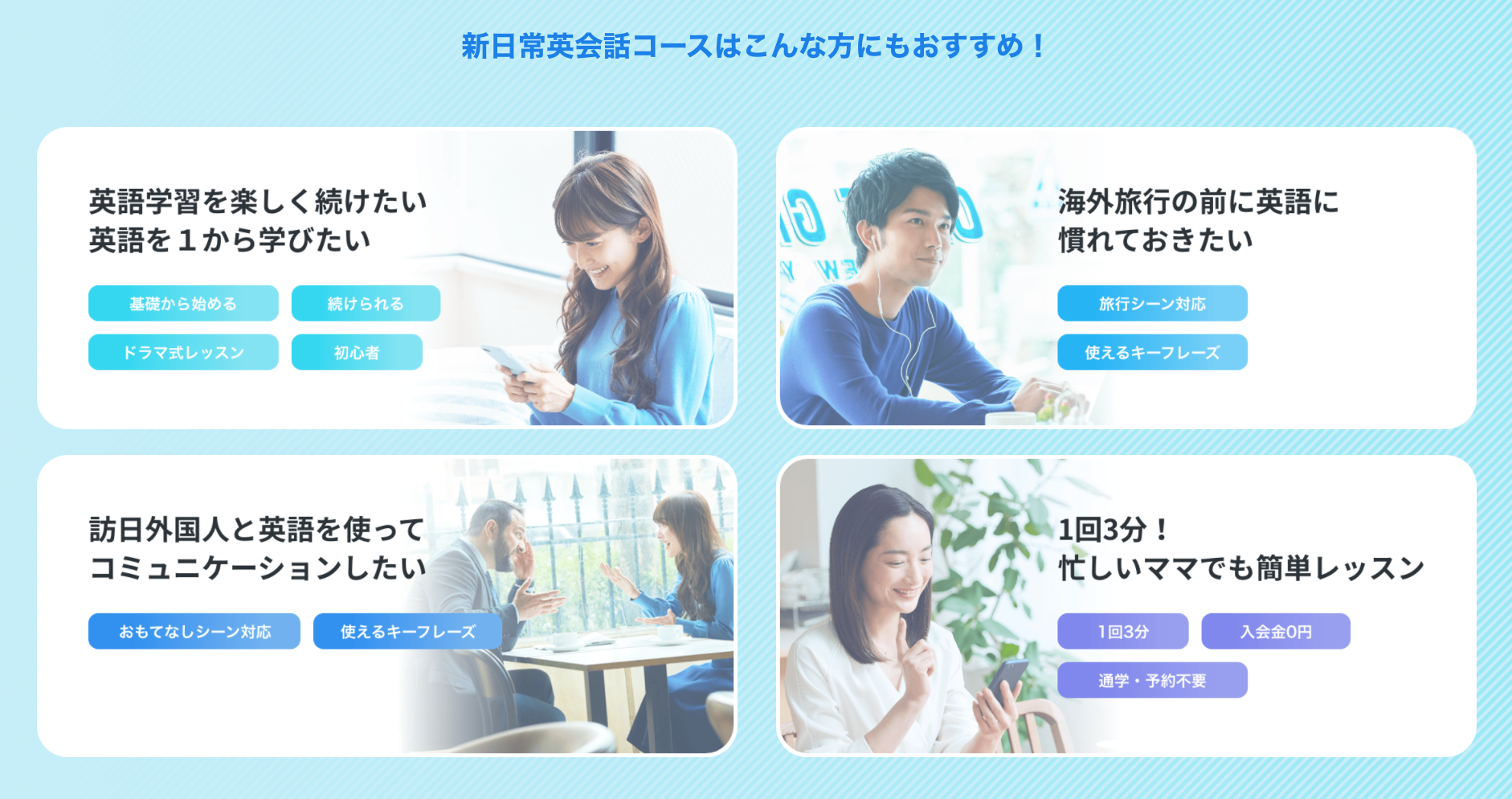 新日常英会話コースは以下の方にオススメです。
