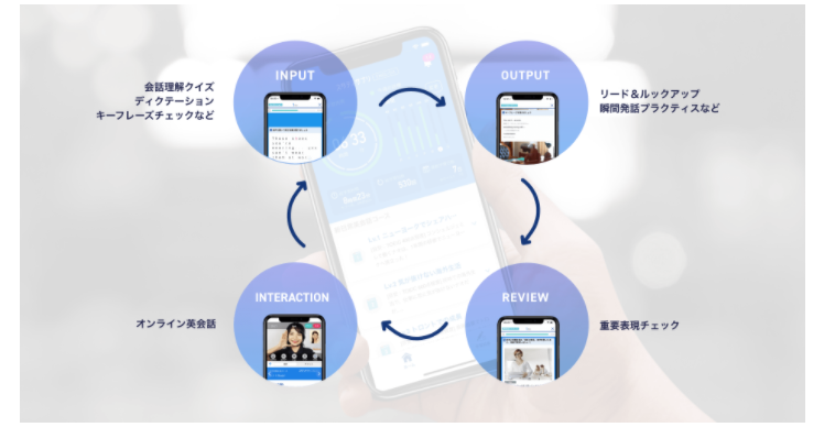 インプット・アウトプット・復習・インタラクションの学習サイクルを実現。