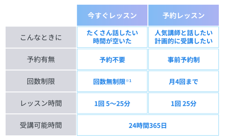 ※1 今すぐレッスンのみ、予約レッスンは月4回までです。